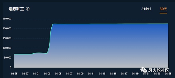 上圖黃線是全網算力增長,從2月底的2.5EiB到今天已經是3.5EiB,增速很快,另外我看全網礦工數量近期也是有一個明顯增長: