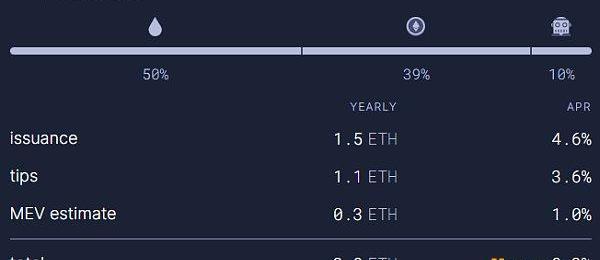 合并前后,由于ETH釋放和分配情況調整,驗證者將接手原礦工的部分收入,驗證者的年收益率將從4.6%上升到9.2%。