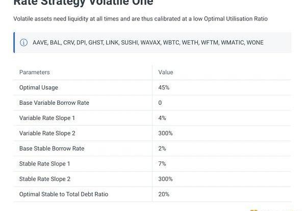 Aave根據某項資產的風險特征,會對不同的代幣給出不同的最優利用率UU、R0,R1和R2。例如,波動性高的代幣或者流動性更差的代幣更需要流動性,所以應盡可能避免其利用率過高的情況。因此最優利率用UU不能設定太高,通常會定在如45%-60%,同時R2往往非常高,比如300%。相應的穩定幣價格波動小,流動性好,因此UU相對定高一些,且R2相對較小,比如60%。
