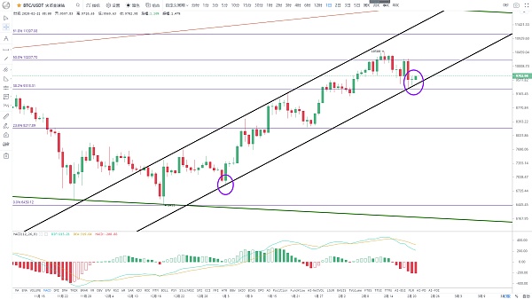 XRP/HKD+0.53%昨日最低觸及趨勢通道支撐后開始反彈,同時也是13900美元下來的斐波那契38.2%支撐位,該區間雙重支撐性較強,日線連續下影線,也表明多頭對該區域的認可,抄底資金入場接籌,后續繼續反彈的概率大,中長期均線依然順向多頭排列,市場整體仍是多頭趨勢,操作上不破趨勢繼續持有為主,上方主要壓力還是在10200美元附近,突破將繼續挑戰前高,近期維持一段時間的震蕩修復,繼續向上的可能性大,減半行情并未走完,周線上看還有向上的空間,后市依然值得期待。