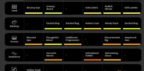 二次創作即用戶可以根據平臺已有或者其余用戶上傳的音樂資源進行創作,平臺提供創作工具。而生成音樂也是Web3音樂上游創作的一個分支,即玩家可以購買或收藏單個音軌組合成不同音樂,音樂單元的引入可以增加整個音樂創作板塊的杠桿,參考PFPNFTs的玩法和多樣性,為音樂賽道帶來更多想象力。