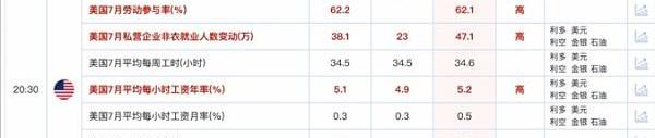 昨天公布的新數據,可以看到美國7月非農就業人口前值是37.2萬人,預估值是25萬人,但是昨天公布的數據是高達52.8萬人,這是非常出乎市場意料的。7月新增的非農就業人口不僅是遠遠的高于預估值,而且還超過了上個月公布的數值,而且增長幅度啊是超過了預估值的兩倍以上。