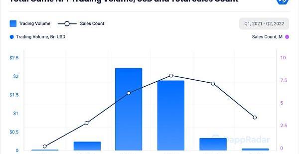 本季度NFT的交易量下降了82%,銷售額也下降了51%。同比銷量也大幅下降了75%,而銷量僅小幅增長了19%。