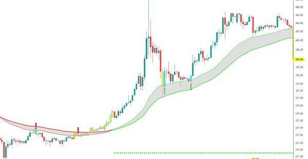 如圖所示,BTC下方周線指數已下滑至圖中圓圈0軸附近,價格也已跌至折線綠轉紅區域,并且下方快慢兩線也已跌至紅色虛線位置,本周反彈陽線帶動快線拐頭上行,后面有金叉慢線跡象,只是時間問題,我們看2014年和2018年熊底也都具備以上特征,后面長時間震蕩筑底,然后發力重新站上,指標線上行然后啟動新一輪牛市行情。