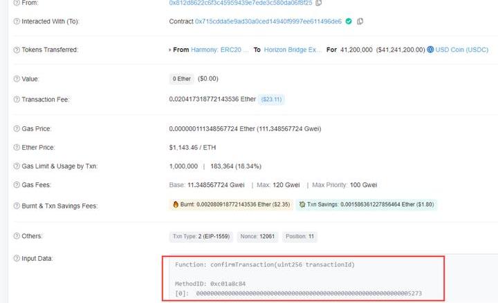 HarmonyBridge是一個跨鏈橋項目,由五個驗證者節點進行操作驗證,本次攻擊主要原因是由于兩個驗證者節點的私鑰疑似泄露,導致合約的confirmTransaction函數被成功調用。