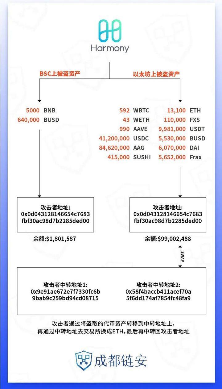 XRP/HKD-2.29%2022年6月24日,成都鏈安鏈必應-區塊鏈安全態勢感知平臺輿情監測顯示,由Layer1公鏈Harmony開發的以太坊與Harmony間的資產跨鏈橋Horizon遭到攻擊,損失金額約為1億美元。目前Harmony官方已通知交易所并暫停了Horizon跨鏈橋。成都鏈安安全團隊對此事件進行了分析,現與大家分享。