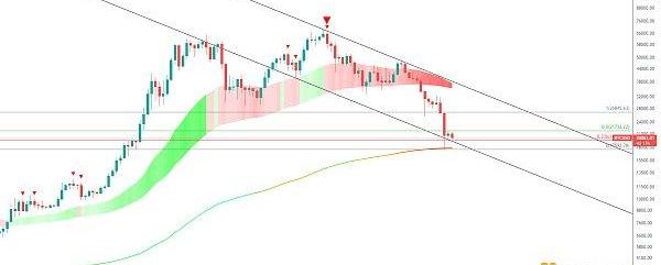 BTC在美股影響下再次回落,下方再次接近通道軌道線,上周小陽反彈也是踩到該線展開,6月初大跌周線也未有效跌破,再上一次觸碰反彈還是在去年9月,BTC從40000拉升至上軌69000見頂,同時這一帶也是6月初周線大陰0.236-19430回撤位,具備多重支撐,近期關注這一帶支撐,站穩不破后面將有望再次上攻周線大陰0.5-21750壓制,近期反彈已多次在這一帶遇阻,長期走勢BTC依舊位于關鍵趨勢線上方,前期熊市均未跌破,本輪也是觸碰回升,目前支撐17800-18000.