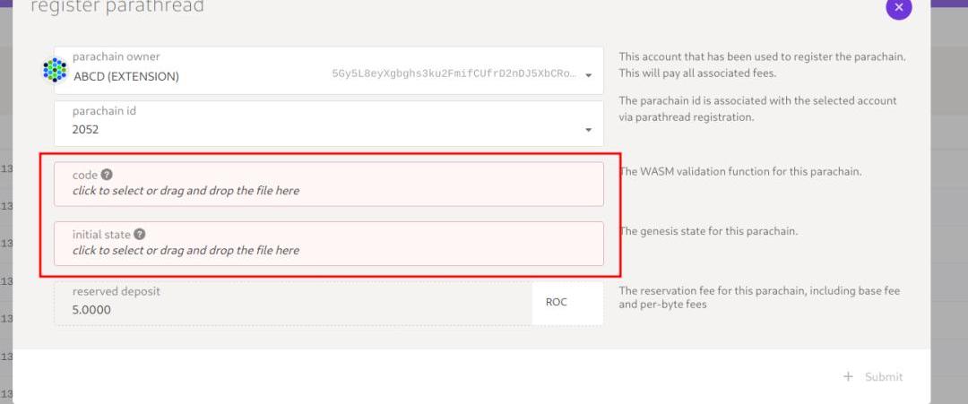 2.通過這個ParaId以及之前我們本地生成的genesisstate和wasm文件來注冊parathread
