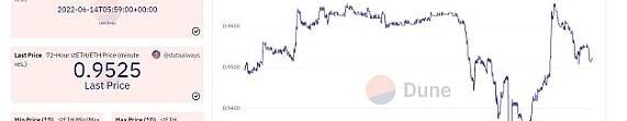 6月8日,據數據,一個巨鯨地址用18398個stETH換取了17924個ETH,隨后爆出stETH的七大機構持有者之一的Alamedal賣出近5萬個stETH,然后,Curve上的ETH/stETH流動性池繼續傾斜。到6月10日,stETH的占比達到歷史記錄的80%,嚴重影響了stETH與ETH的兌換比例。最初,stETH與ETH是1:1。最低的價值錨定為0.92ETH。