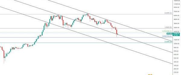 上周末BTC價格繼續下探,向下插針至圖中長期趨勢線止跌反彈,前期已有多次這樣走勢,2020年3月和2014-2015年熊市的兩次觸底均是這一帶見底回升,2018年熊市則是靠近這一帶止跌筑底,前期均是跌破紅色軌道支撐迎來加速探底,而軌道兩線逐步靠攏收窄至交叉,代表BTC一般進入右側底部區域,后面震蕩蓄勢重新站上壓制軌道,走出新一輪牛市行情,2015-2017牛市、2019小牛和2020-2021牛市,所以BTC穩住不破,后面也是有望再次開啟筑底走勢,目前軌道線還是逐步收窄姿態,穩健者可以等待右側機會。