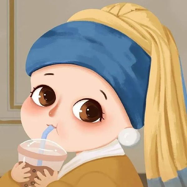 萌化版「戴珍珠耳環喝奶茶的少女」