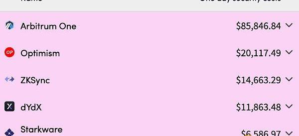 Layer2費用成本排名,數據來自l2fees.info