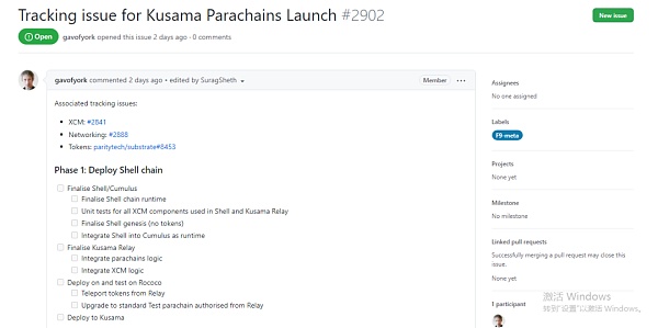 在開啟正式的拍賣之前,會先部署Shell chain 和公益平行鏈 Statemint。需要了解issues進度的話可以點開 github (https://github.com/paritytech/polkadot/issues/2902)查看,完成的會顯示√。
