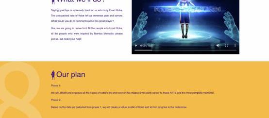 他們表示要收集整理,科比生前的所有生活痕跡,技術復原他其早期的影像,然后將資料傳到鏈上進行保存?,并制作nfts,建立數字博物館,用于參觀紀念等活動并聲稱要制作一個數字化的科比讓他在原宇宙里重獲新生,要讓他重新回到在NBA的賽場,讓粉絲們可以在元宇宙里為他的精彩表現歡呼!