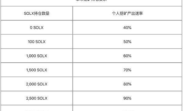 在其他條件相同的情況下,持有一定數額的SOLX代幣可以極大的提高速率。持倉要求為可用余額,凍結金額將不計入持倉。