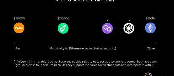 需要強調的是,不同的L1的安全性差異很大,以太坊相對于其他的L1其安全性要好得多。ImmutableX是StarkWare用全新尖端擴展技術構建的,是唯一一個真實展現出來的二層技術。它能夠提供比第一層以太坊高幾個數量級的吞吐量,同時擁有與以太坊幾乎相同的安全性。PolygonPoS、Flow和WAX,提供的安全性沒有那么強。不過,Polygon確實有一個實時的Plasma執行,可以被認為是一個具有更好安全保證的二層解決方案。然而,它目前不支持任何NFT,所以我們在這篇文章中不考慮它。但是我們將專門關注他們的PoS鏈。Polygon還計劃在未來支持其他L2解決方案,如Optimistic和ZKRollups。同樣,由于這些還沒有上線,我們選擇在此分析中不考慮它們。雖然這個時間表還不確定,但如果Polygon增加對Rollups方案的支持時,從安全性和吞吐量的角度來看,它將處于與ImmutableX同樣的地位,這就要看具體實施的情況了。如果你有興趣了解更多關于Polygon的信息,我們建議在這里查看我們最近對它的深入研究。
