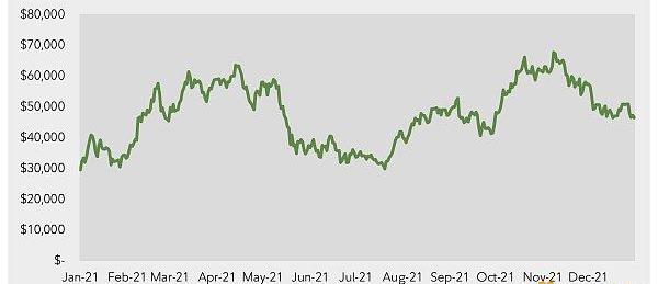 XRP/HKD-3.95%對于比特幣來說,2021無疑是動蕩的一年——從年初的約2.9萬美元到年底的約4.7萬美元,比特幣在2021年上漲了64%。首先是4月份快速上漲至超過63,000美元的歷史新高,隨后下跌超過50%。到7月下旬,比特幣被推回了略低于3萬美元的年初價格。隨后,11月初創下逾6.7萬美元的歷史新高。比特幣現在的交易價格比近期的歷史高點低了約31%。下面我們將回顧數字資產領域發生的一些重大事件和里程碑。