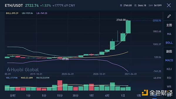 最新數據顯示,以太坊在過去7天內上漲了超11%,在過去的24小時內,躍升了約4.5%。自今年開年漲幅已達270%。