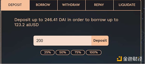 在該協議中,你能獲得的貸款金額最多高達DAI存款的一半。例如,你存入1000個DAI就可以借到500?alUSD。然后,存入的DAI會放入yield?farm中產生收益,隨著時間的推移,你的alUSD債務會得到償還。