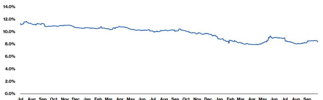 在5月份開始的算力大遷移之后,BTC的哈希率在第三季度出現強力反彈,目前美國已成為算力占比最高的國家,占比高達35%。