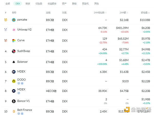 過去24小時去中心化交易所的交易量數據來源:Debank