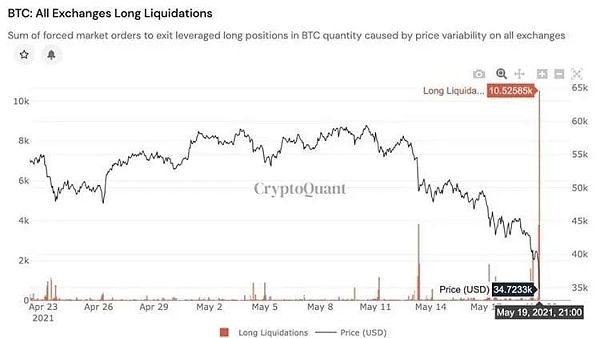 Moskovoski Captial首席信息管理Lex Moskovoski分享的數據顯示,5月18日一小時內有22917個比特幣被轉移到中心化交易所,每小時的流入量是2020年3月“黑色星期四”暴跌以來最多的一次。交易所的資金流入通常被解釋為,資產被轉移到中心化平臺上出售。