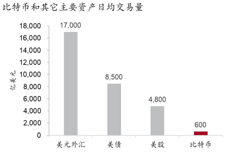 圖 3:比特幣日均交易量遠小于其他大類資產(資料來源:BIS、CBOE、SIFMA、招商銀行研究院)