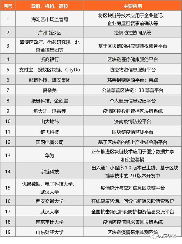 表2:區塊鏈技術在疫情中的應用情況不完全統計