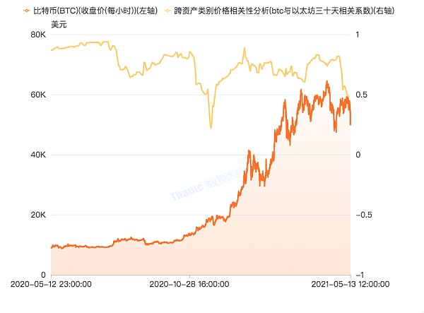 數據圖一:btc與以太坊30天相關系數