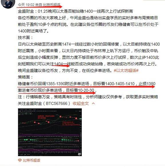 激進者幣價處于1420-1425附近多單進場,目標看1440-1450-1470,止損根據資金及倉位判斷