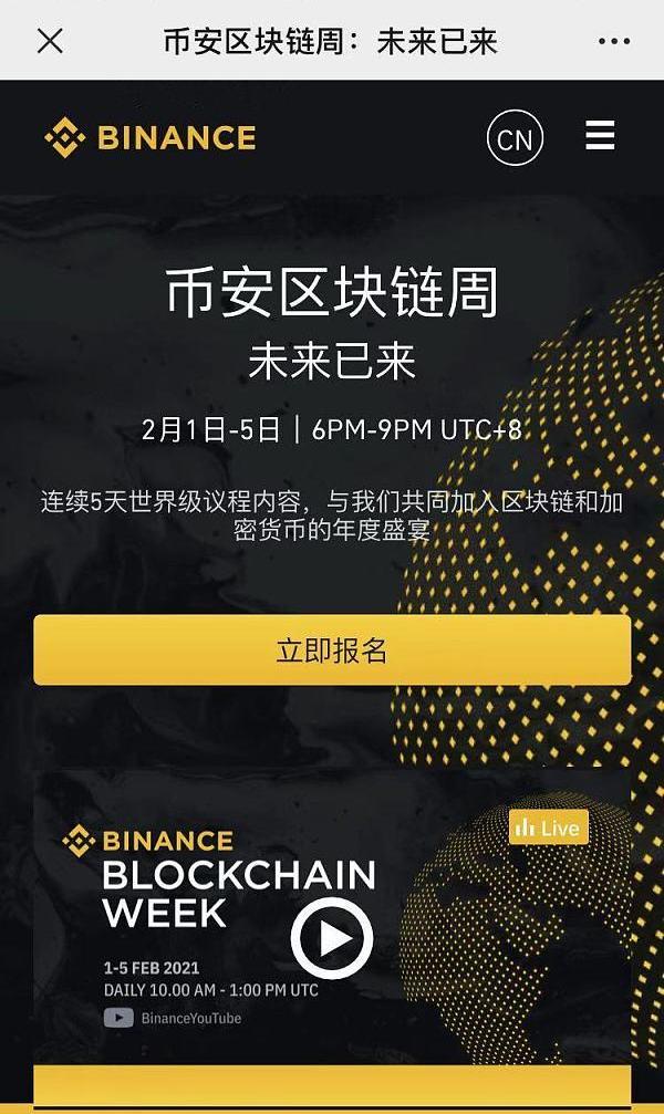 為期5天的幣安區塊鏈周2021:未來就是現在將在2021年2月1日至2月5日舉行。