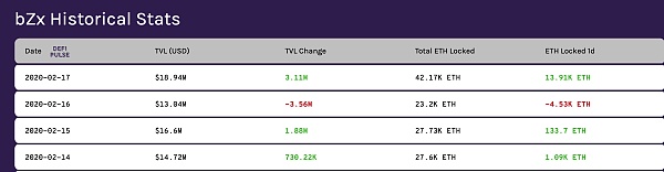 不過,僅僅經過一天,2月17日bZX中鎖倉的ETH增加了近1.4萬枚,總額達到4.2萬枚。