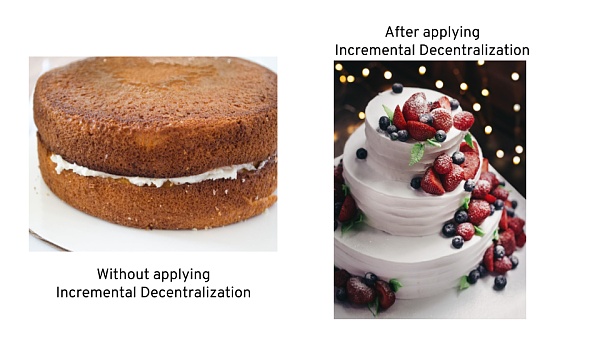 漸進式去中心化作為一種模式已經發展了一段時間,但2019年似乎是該模式的最佳實踐階段。 漸進式去中心化就像給蛋糕撒上一層糖霜,蛋糕上的糖霜不是必需的,但它會讓蛋糕看起來更有胃口,而且更吸引人們去品嘗。 同樣,你可能是世界上最棒的面包師 (開發者),可以制作出世界上最美味的蛋糕 (dapp)。 但是如果你的蛋糕看起來并不誘人,就沒人會想嘗你的蛋糕,就算你再怎么告訴他們你的蛋糕有多么美味。