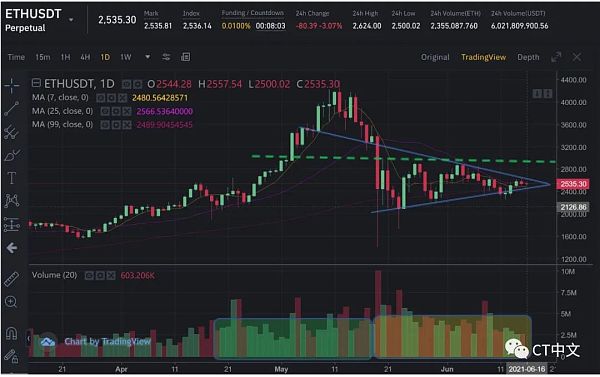 比特幣和ETH在兌美元匯率相同下的價格比較