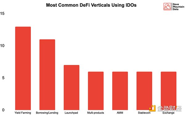 在通過IDO進行公開融資的門類中,Yield Farming和借貸協議是最常見的項目。