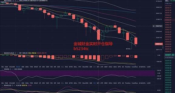 比特幣在進兩日嚴重下跌之后,日內價格再次下行攻破下放強力支持從新刷新低點,最低下跌至31111位置,日線圖可見連續3日跌幅,空頭能量越走越強,各均線持續下移,各附圖指標均為低位,晚間行情大概率延續下跌走勢?