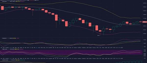 ETH:凱哥昨日晚間文章中分享過,短線反彈并未企穩,晚間將會加大二次下跌的風險。晚間行情也是如期下探,低位觸及915位置后止跌隨后反彈,上行180余點,高位觸及1100附近,目前在1080不斷上探中。短周期小時圖上看,布林帶呈收口姿態,目前反彈力度已經出現不足,價格上行開始受阻,后續若是多頭不能持續發力,行情還有回調的風險。附圖MACD兩線零軸上方延續上行,RSI和Stoch走勢向下放量,由此可見操作上暫時不建議盲目追漲,仍是回調多單為輔,反彈空單為主。上方關注1100,下方關注1000。
