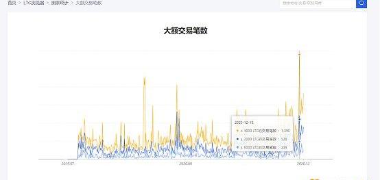 萊特幣的鏈上大額交易筆數在近期有顯著增長,12月18日全天,大于1000LTC的大額鏈上轉賬達到1390筆,是近一年來的最高位。