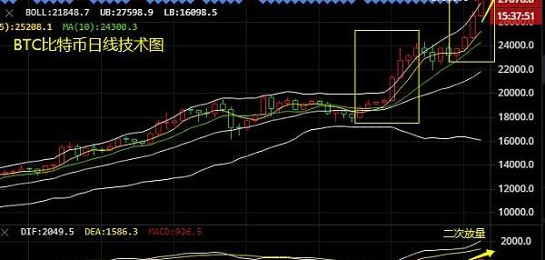 XRP/HKD-2.92%人們都說“心有多大,舞臺就有大”,這句話無論放到哪里,就變成了一種鼓舞。但是放到幣市的話,特別是面對本周末比特幣的行情,談老師只想說:“只要你敢想象,比特幣價格就敢超乎你想象。”繼平安夜和圣誕節之后,比特幣又開啟了一波牛市,越漲越瘋狂,一路馬不停蹄的向上奔跑,說好的中期目標看向25000美元關口,不到兩個交易日的時間里卻不小心超越了27000美元關口,這波”瘋牛“勢頭,已經顛覆了對市場的預期。