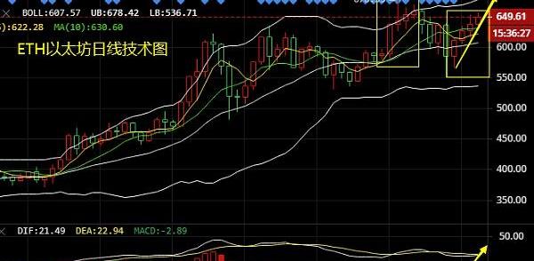 ETH:說起以太坊感覺就像”扶不起的阿斗“大餅不斷創新高,以太坊還是在上一波牛市的行情之中穩中上行,不過在這一波行情之中,以太坊表現的還算比較出色,畢竟是二把刀主流加密貨幣。本周以太坊在一波下探至550美元關口之后,短線空頭出現了止跌的跡象,多空之間的拉鋸最終在站穩600美元關口之后出現了反轉,從而一路震蕩上行,周末亦是跟隨大餅上漲而上漲。以太坊雖然上漲的勢頭比較緩慢,但仍可看到其中期價值。日線亦是四連陽,多頭節節攀升,兩大均線MA5/MA10再度交金叉支撐其上行,短期內重點關注660美元一帶壓力,下方關注642美元一帶支撐情況,操作上建議保持多頭思路跟進。以太坊在上一波的高點676.55美元一線出現回調后,幅度達到近126個點,而這一次的探底回升也接近100個點,目前來說這個勢頭還不夠,同時,技術面還沒出現大漲的跡象,相對來說投資空間還是比較大的,特別是對于中長線布局。