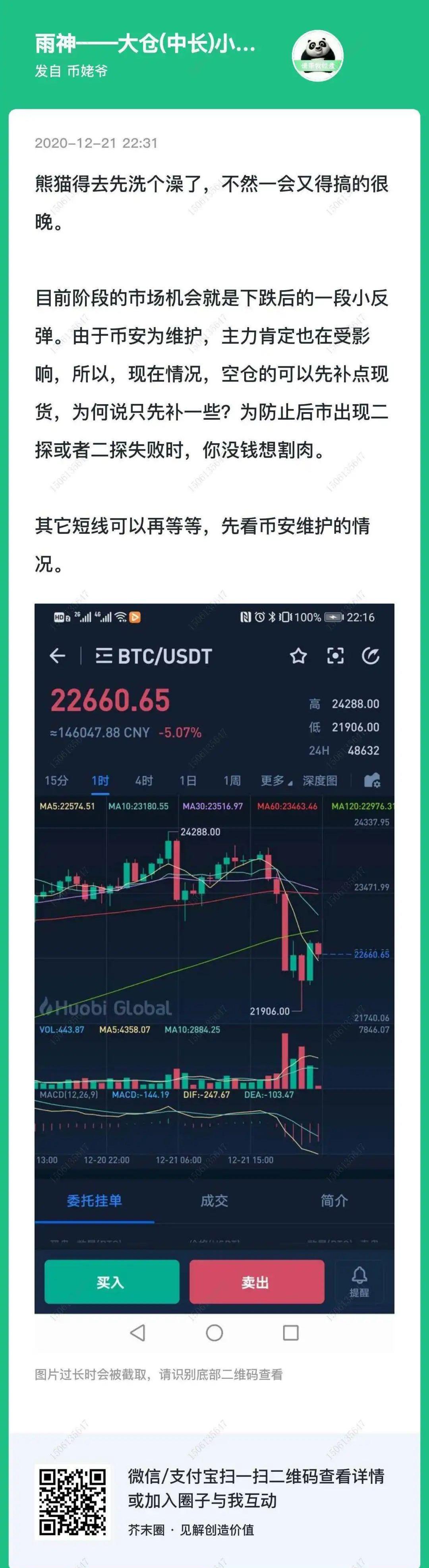 以下是12月21號22點31分,雨神發布在圈子里的現貨補倉提示,當時價格在22660左右。現在來看,這并沒有什么,拿到現在也有近700美金左右的盈利空間。但細心的朋友也會發現,市場最低是跌破了22000,所以,也就有有些人認為,22660的入場位并不是太優越。然而事實真的就是這樣么?
