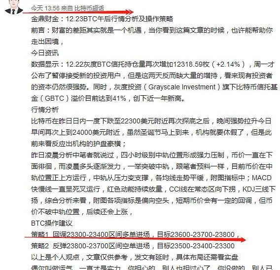 午后14點給出23300-23350區間多單進場,行情最低跌到23339達到進場點位,行情最高漲到23680,完美獲利341點利潤,恭喜跟上的幣友,微博上幣價不小心打錯成23400,實際是23350,