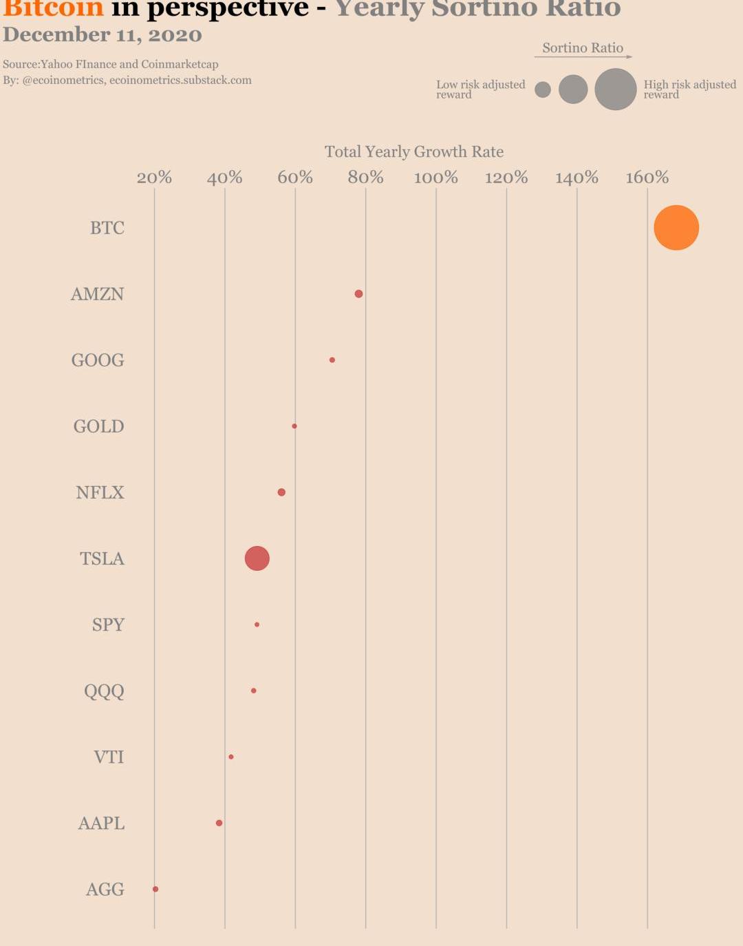 BTC年漲幅遙遙領先各大公司股票