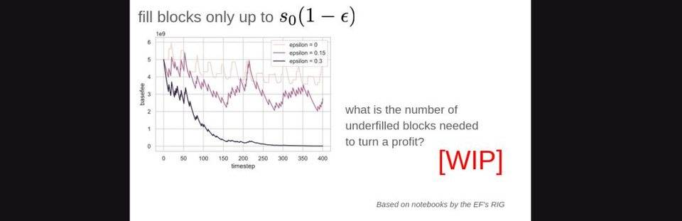 Flashbots 道德準則:目前以太坊網絡有 85% 的算力是通過 MEV geth 客戶端運行的,這為系統引入了一個新的中心點。如果 Flashbots 填充的大小僅達到 s0(1-e)(略小于目標塊大小)怎么辦?返回利潤所需的未填充區塊的數量是多少?