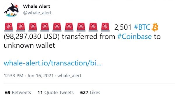 也很容易忘記,由于這個定義,鯨魚運動和鯨魚可能是相互排斥的。這聽起來可能很奇怪,但它有助于強調知道鯨魚交易來自哪個錢包的重要性。