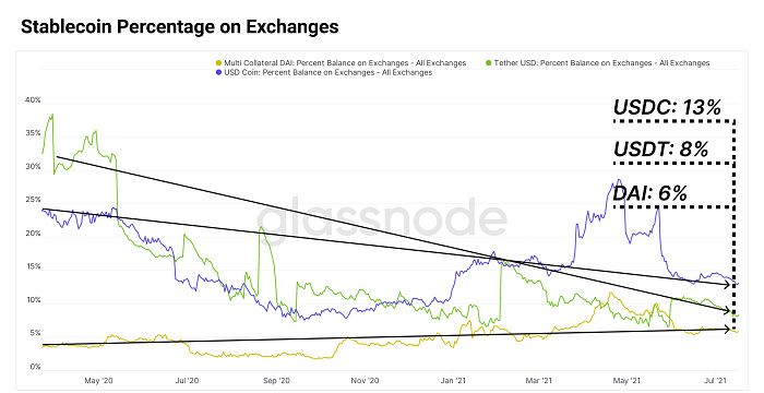 在市場走高期間,由于市場對風險對沖的交易對和收益耕作需求增加,穩定幣流量和資金池受到 Uniswap 和 Sushiswap 等去中心化交易所(DEX)協議的強勁帶動。