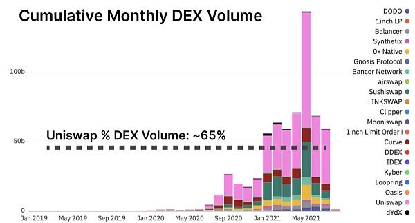 雖然許多具有 Uniswap-v2 流動性的項目提供質押,但 v3 已經成功地吸引了整個產品的流動性和使用量,這純粹是利用費用的優點。資本效率和產品優勢正在鞏固他們作為 DEX 總量的主導者的地位。
