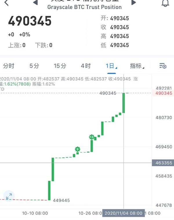 更重要的是,自第四季度以來,灰度比特幣信托的持股量迅速增加。根據AICoin數據,在11月4日東部時間,該信托的持倉量增加了7809BTC,總持倉量達到490,345BTC。自10月14日以來,這是該信托連續第16個工作日增加其BTC持倉量,累計達到41,896BTC。