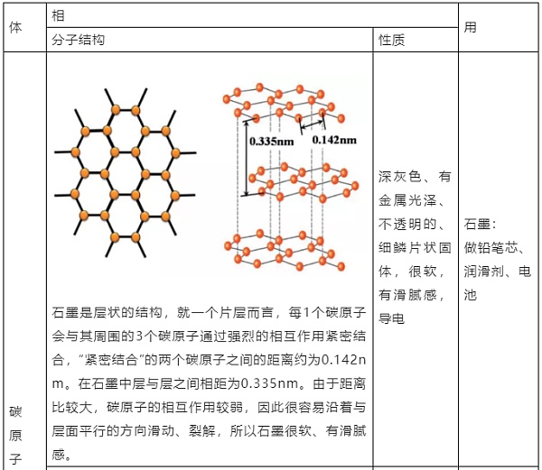 石墨和金剛石是碳元素的“同素異構體”,都是由碳原子構成的,對二者性質和功能進行比較,如表2-1所示: