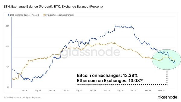 這要從交易所余額開始,比特幣供應量自2018年底以來在交易所中所占比例首次降至最低。而在中心化交易所的范圍之外,以太坊生態系統正在為ETH創造大量的鏈上目的地。